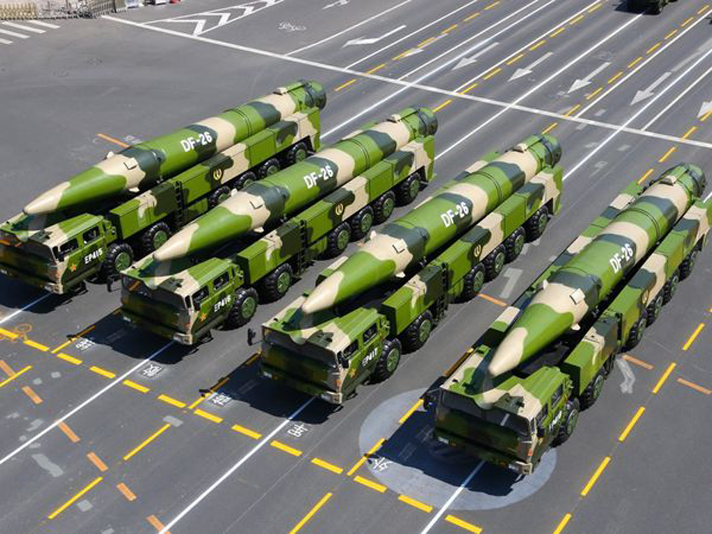 图:4月底,国防部对外证实,“航母杀手”东风26导弹正式列装火箭军某旅\网络图片