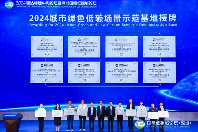 论坛开幕式上举行了“2024城市绿色低碳场景示范基地”授牌仪式,8个优质项目获评,涵盖会展中心、校园社区、产业园区、研发基地等。今年上榜的示范基地中,“近零碳”项目包揽前三名,低碳“黑科技”占据“半壁江山”,绿色低碳的“种子”遍地开花。获得授牌的项目分别是:深圳国际低碳城会展中心、甘泉路近零碳排放示范社区改造共建项目、天津大学深圳学院“近零碳”校园、深空之城先进空中交通AAM中心、深圳机场国际货站扩容(二期)冷库相变蓄能示范项目、深圳市生活垃圾分类科普教育馆、天健云途·创智中心源网荷储一体化智慧低碳园、深圳市氢能创新研发中心。